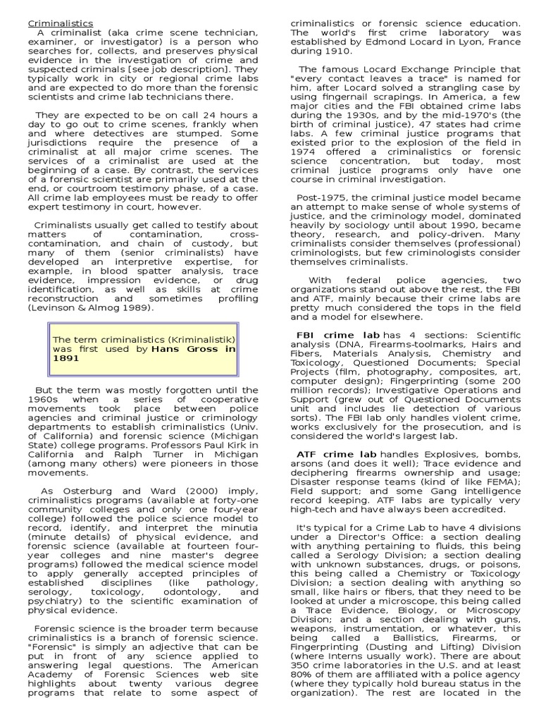 All About Criminalistics Offender Profiling Forensic Science