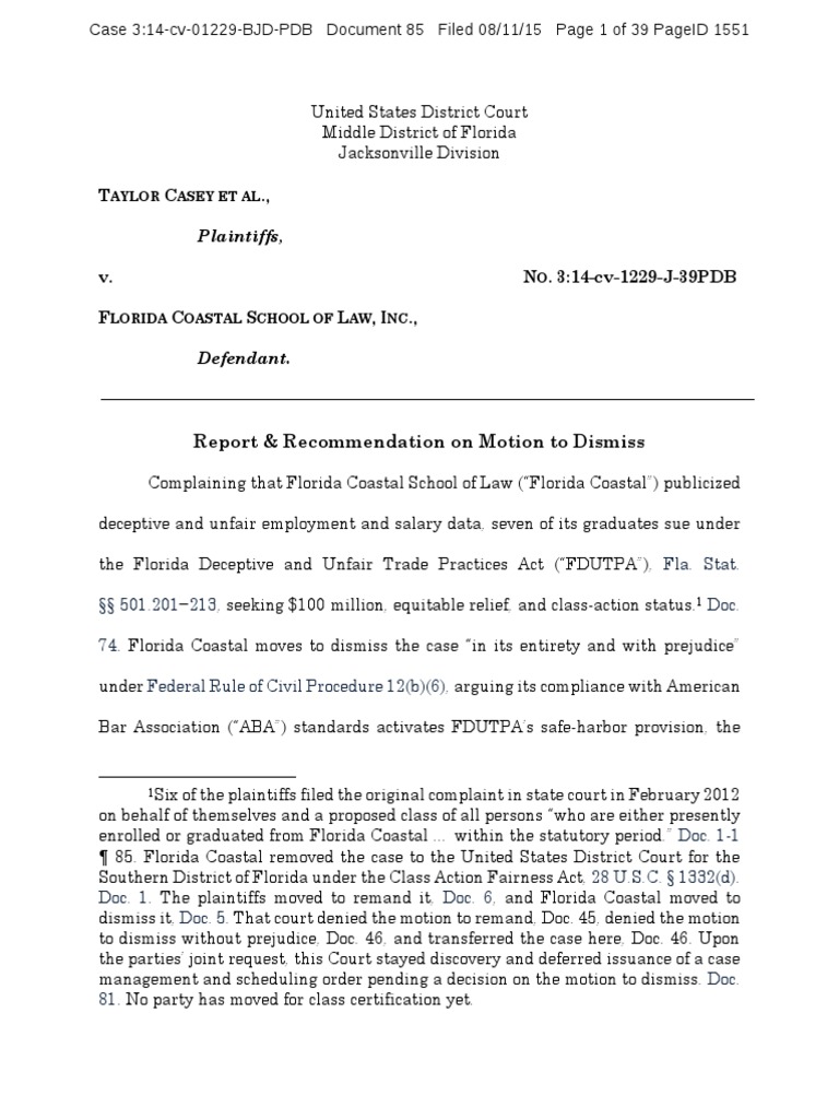 Report And Recommendations Casey V Florida Coastal Law Federal