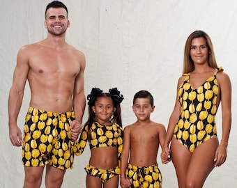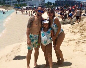 Father And Son Matching Swim Trunks Mommy And Me One Piece