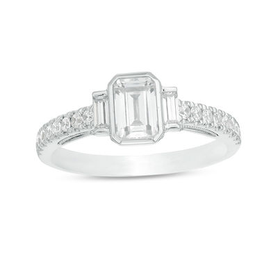 1 Ct T W Emerald Cut Diamond Three Stone Vintage Style Engagement