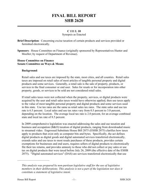 Final Bill Report Shb 2620 Washington State Legislature