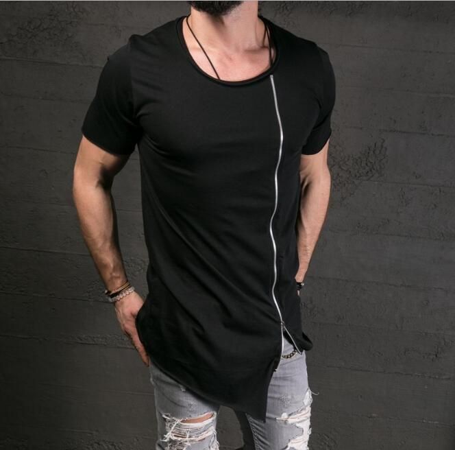 2017 Oblique Long T Shirt Men Hip Hop Black T Shirt Longline Extra