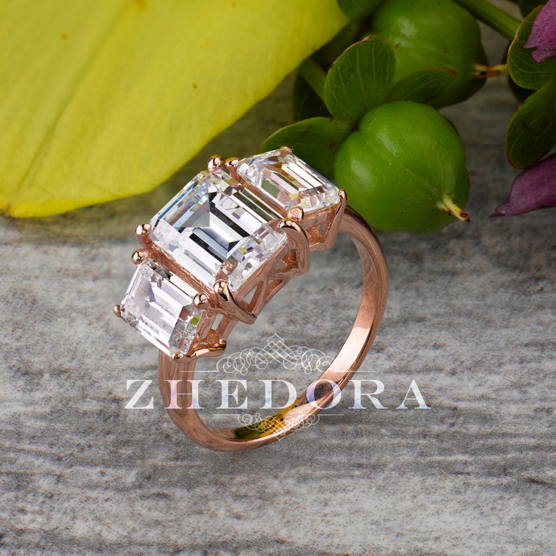 Rose Gold Emerald Cut Ring 14k 18k Tripe Stone Emerald Cut Etsy