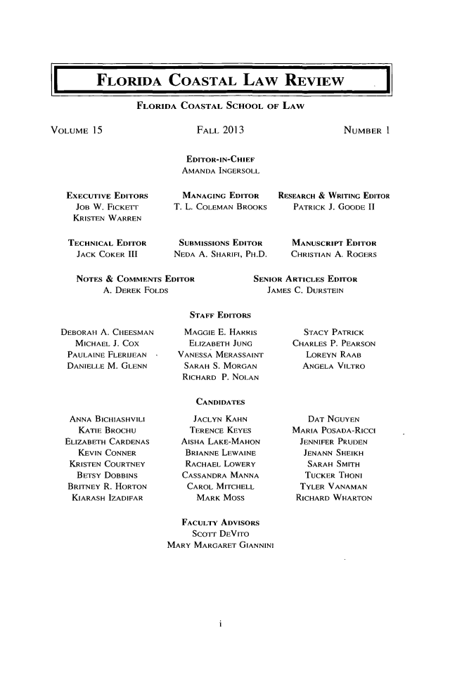 Florida Coastal Law Review V 15