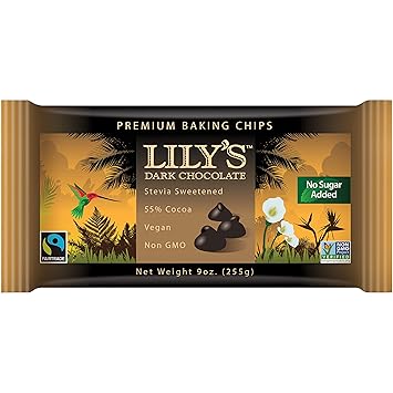 Lilys dark chocolate baking chips stevia sweetened with no added sugar are great for everything from cookies to pancakes to snacking right out of the bag. A kosher and sugar free chocolate. Lilys dark chocolate chips great tasting healthier baking starts with great tasting healthier ingredients.