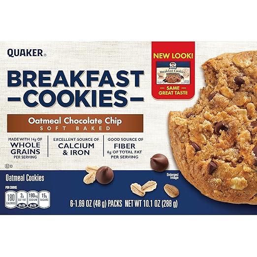 Quaker Breakfast Cookies Oatmeal Chocolate Chip 6 Cookies Per Box