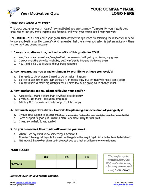 Motivation Quiz Coaching Tools From The Coaching Tools Company Com