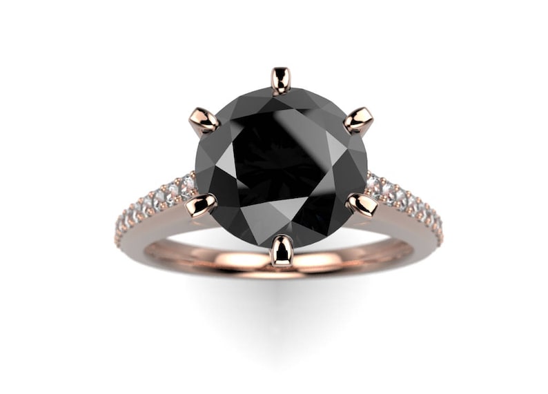 Black Diamond Ring Rose Gold Black Diamond Engagement Ring Etsy
