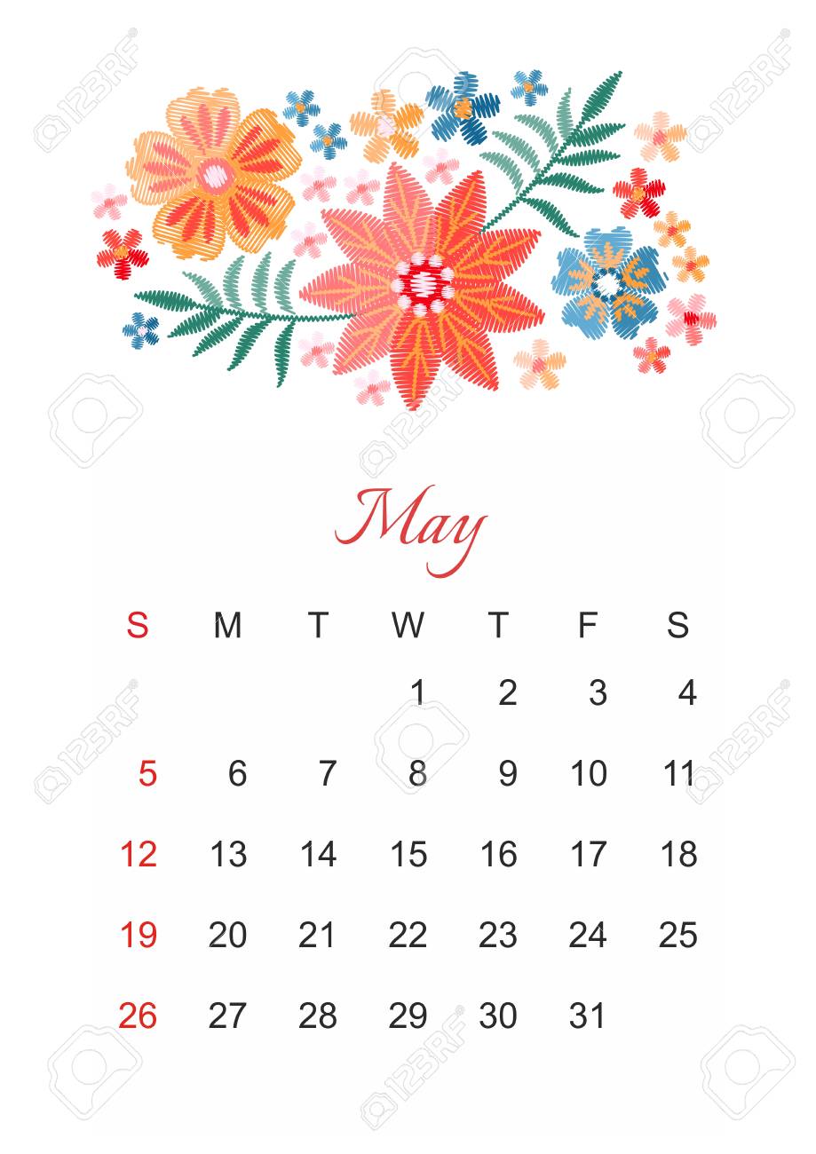 May Vector Calendar Template For 2019 Year With Beautiful