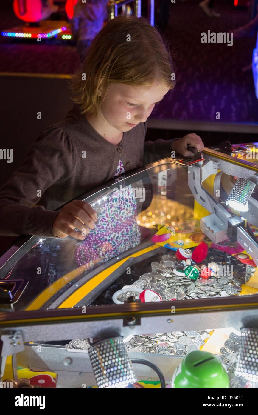 Young Girl Aged Eight Years Old Age 8 Years Playing On A Popular