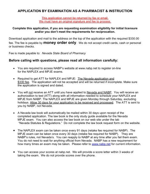 Examinee Application Nevada State Board Of Pharmacy