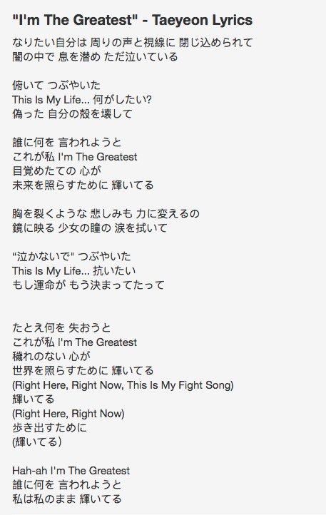 소원 On Twitter Taeyeon I M The Greatest Japanese Lyric