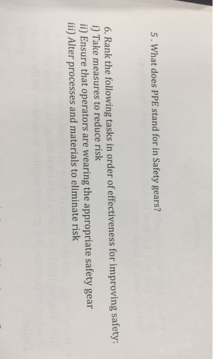 Solved What Does Ppe Stand For In Safety Gears Rank The