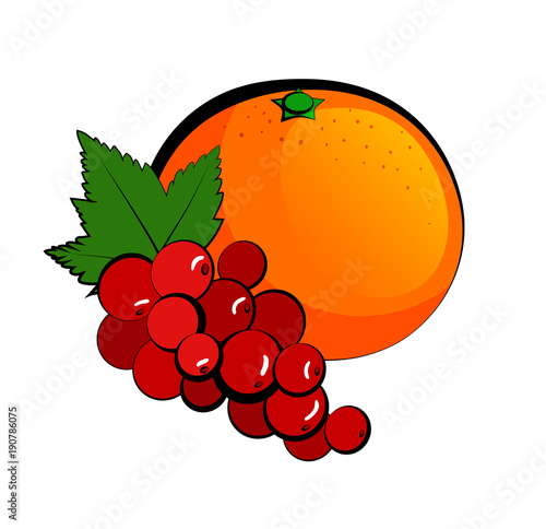 Red Currant And Tangerine On A White Background Vector Illustration