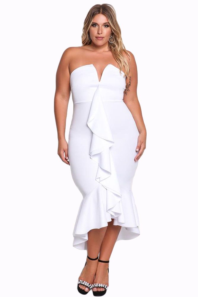 Sexy White Cascading Slit Sleeve Bodycon Plus Size Dress Sexy