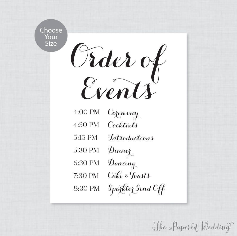 Printable Order Of Events Sign Black And White Wedding Order Etsy