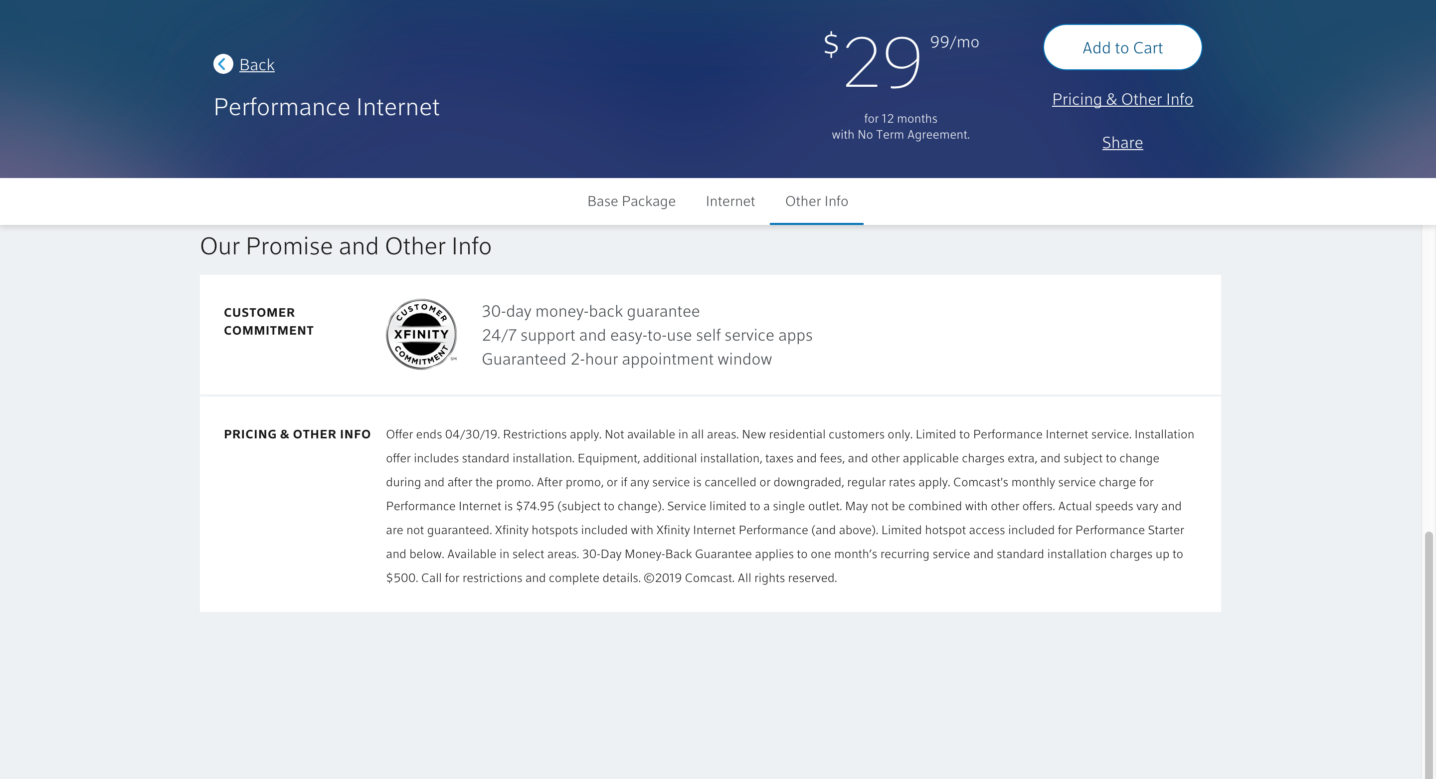 Comcast Xfinity Performance Internet 60mbps Download 5mbps Upload