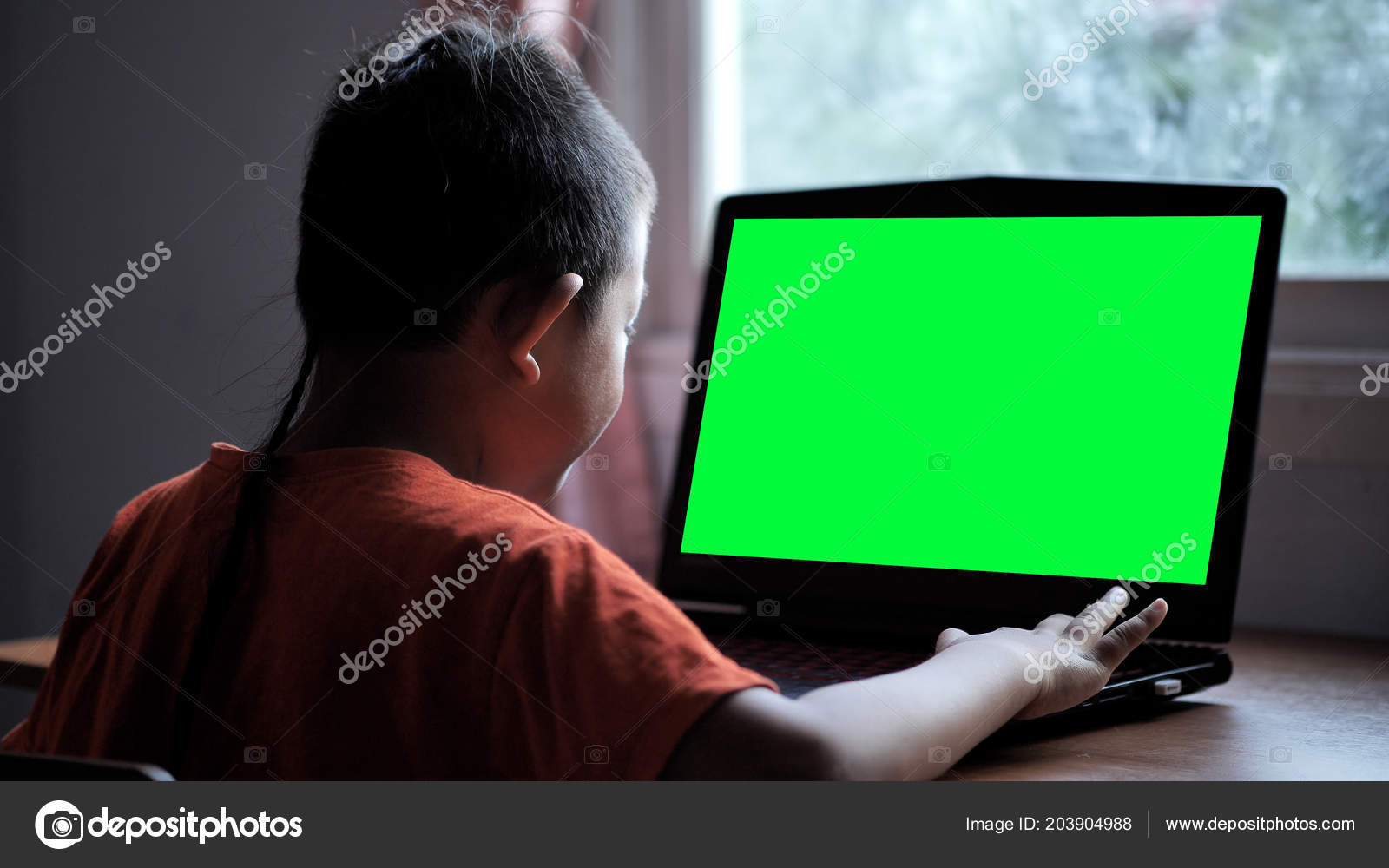 Asian Boy Years Old Using Laptop Search Internet Information Home