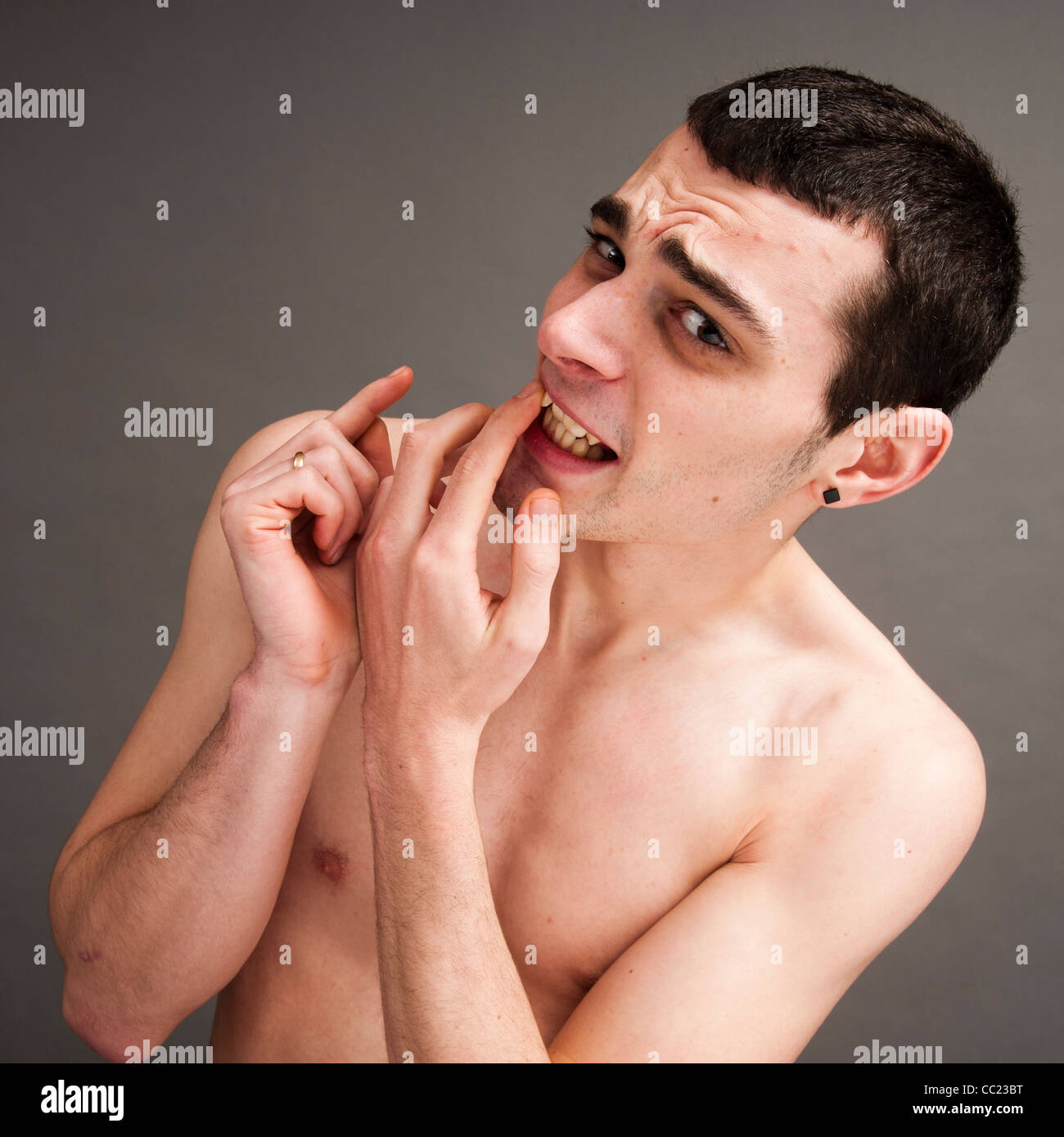 A Slim Thin Slender Late Teen Boy Young Man Adult Checking His Face