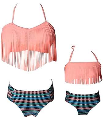 Amazon Com Family Matching Swimwear Mom Girls Tassel Swimsuit Two