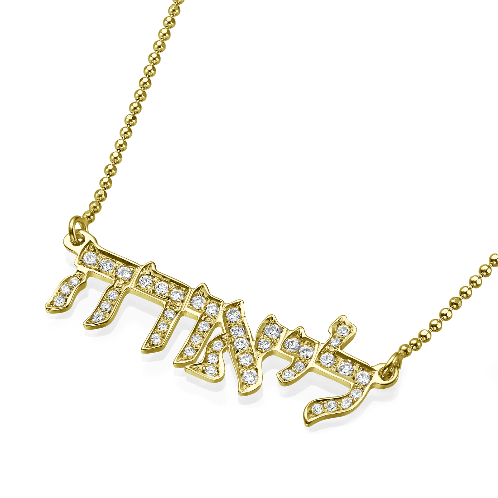 Diamond Hebrew Name Necklace Baltinester Bros Jewelry And Judaica