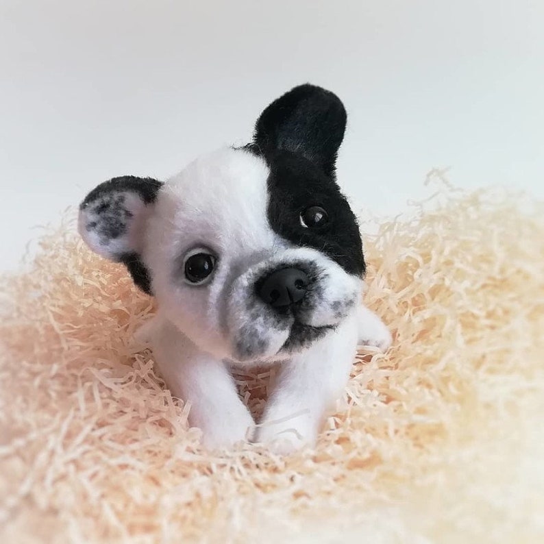 Crochet Black And White French Bulldog Toy Cute Knitted Dog Etsy