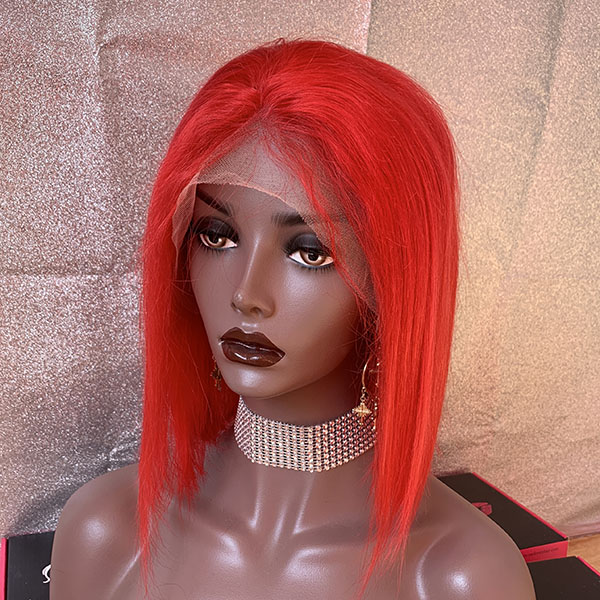 Sidary Virgin Human Hair Red Bob Lace Front Wigs With Baby Hair