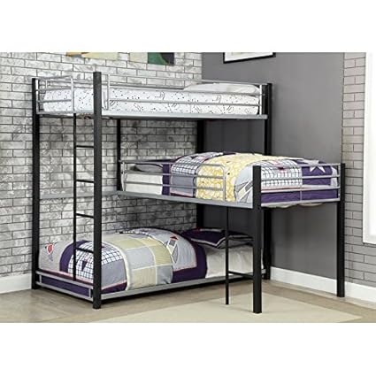 Amazon Com Furniture Of America Turner Modern Triple Twin Bunk Bed