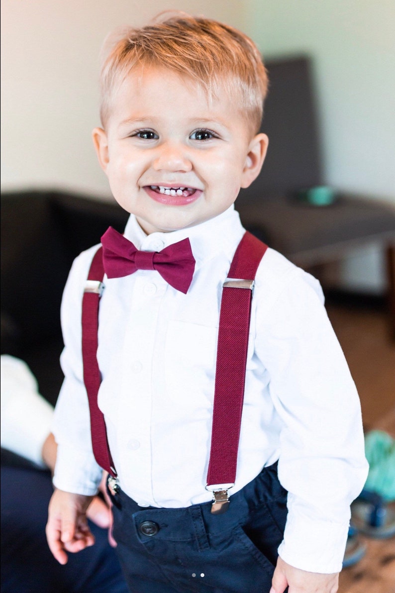 Burgundy Bow Tie Suspenders Set Rustic Wedding Burgandy Ring Etsy