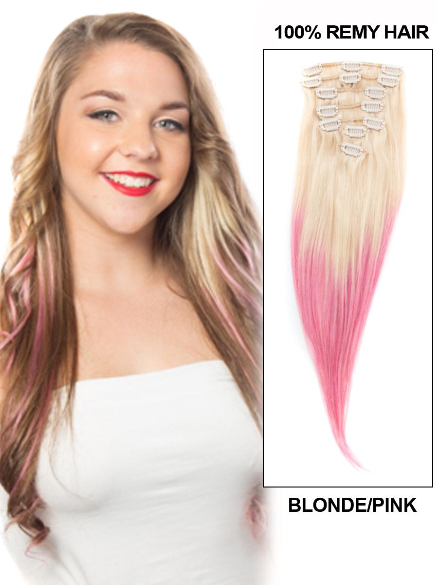 24 Inch Popular Ombre Clip In Hair Extensions Two Tone Straight 9 Pieces