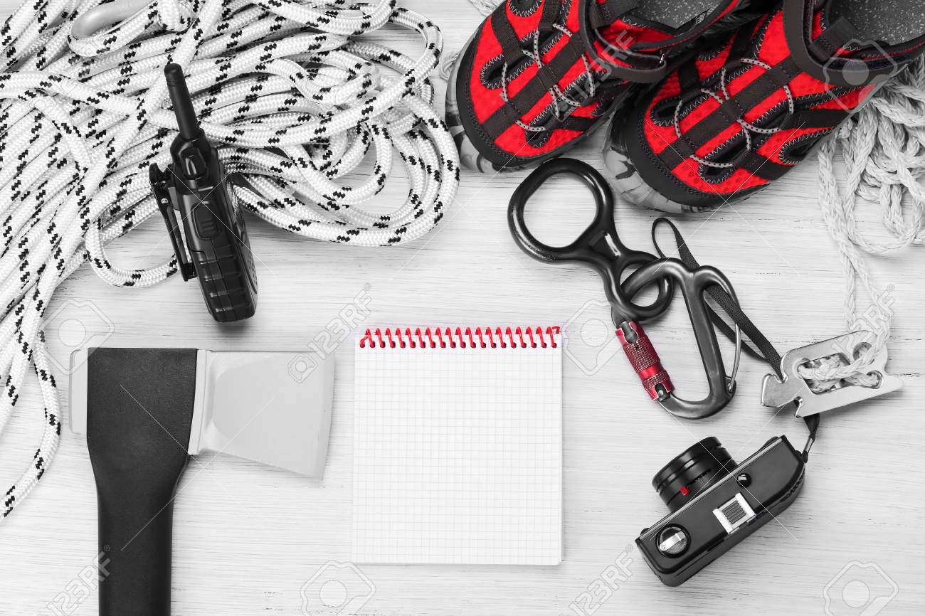 Set Of Things For Camping And A Tourist In Nature Color In Black