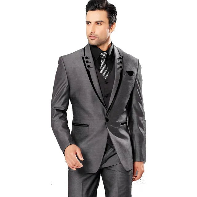 New Shiny Charcoal Man Tuxedos Slim Fit Groom Tuxedo 2016 Men