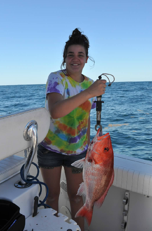 A Fisherman Holds A Red Snapper Caught While Deep Sea Fishing In The
