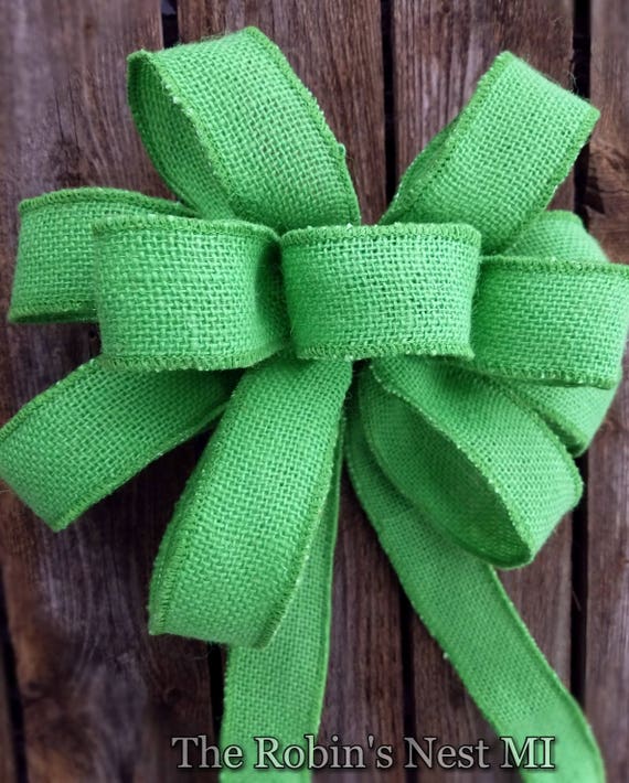 Green Burlap Bow Rustic Bows Organic Wired Ribbon Burlap Etsy