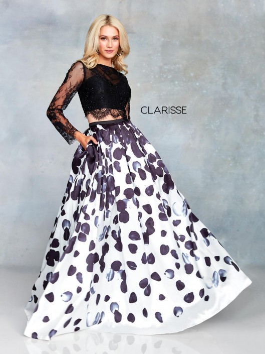 Clarisse 3708 Sheer Long Sleeve 2 Piece Prom Gown French Novelty
