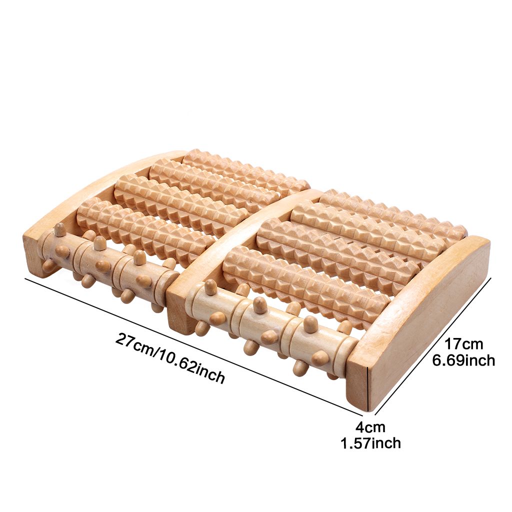 Wooden Dual Foot Massager Roller Pain Plantar Fasciitis Heel Foot