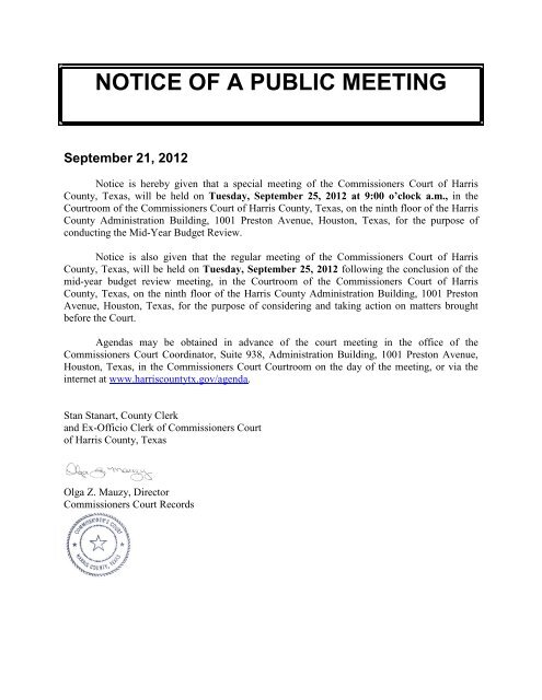 Notice Of A Public Meeting Harris County S New Web Site
