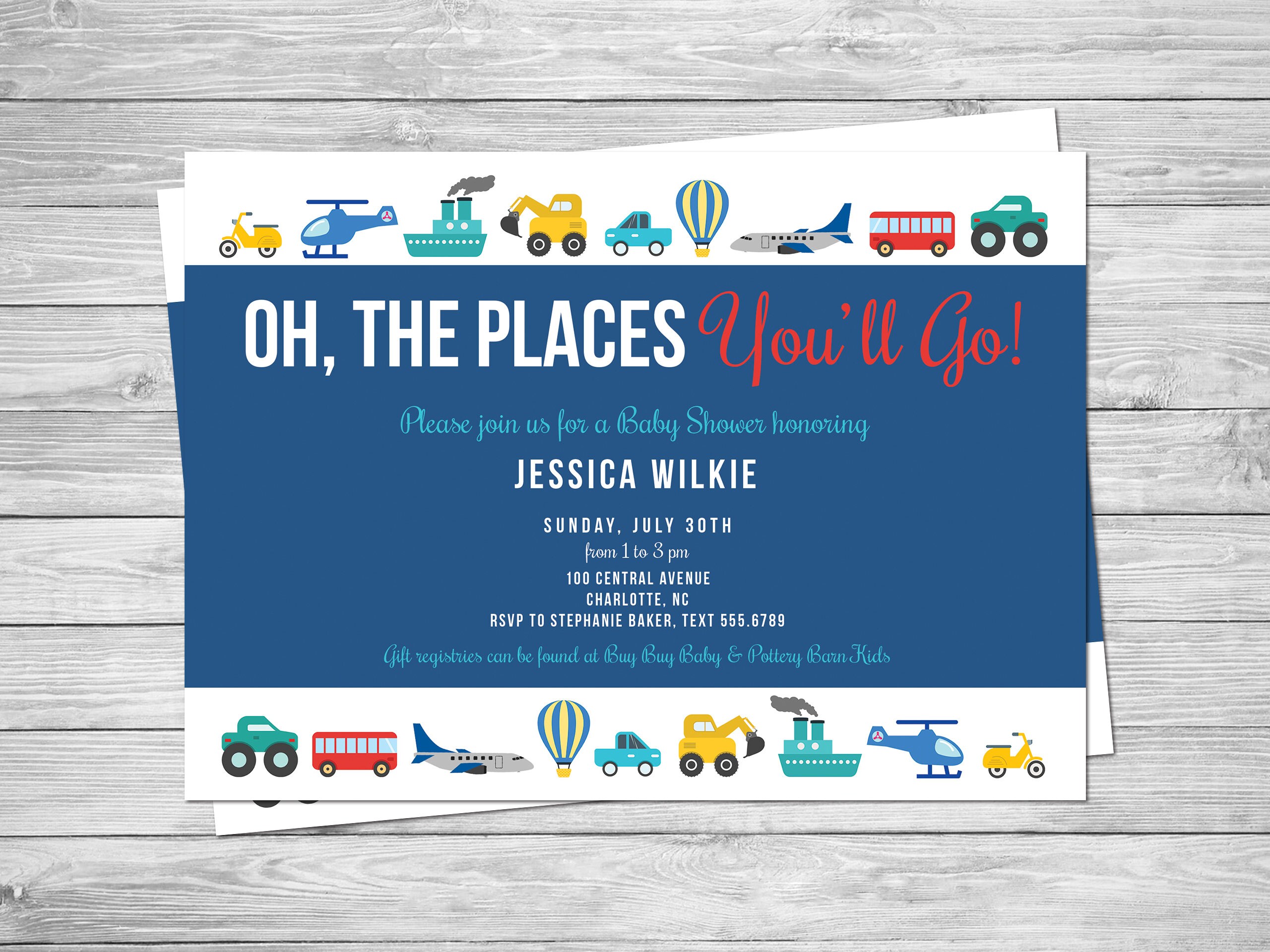 Oh The Places You Ll Go Baby Shower Invitation Cars Etsy