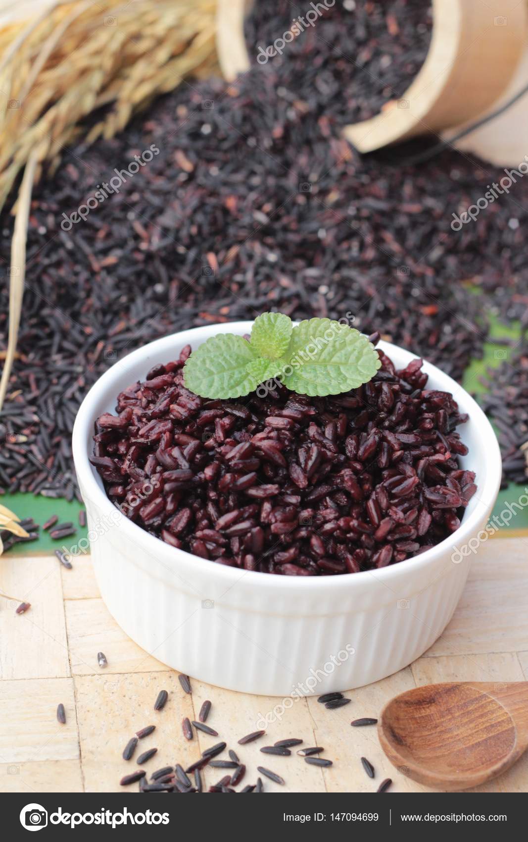 Cook Black Rice And Raw Organic Riceberry Rice Stock Photo Picture