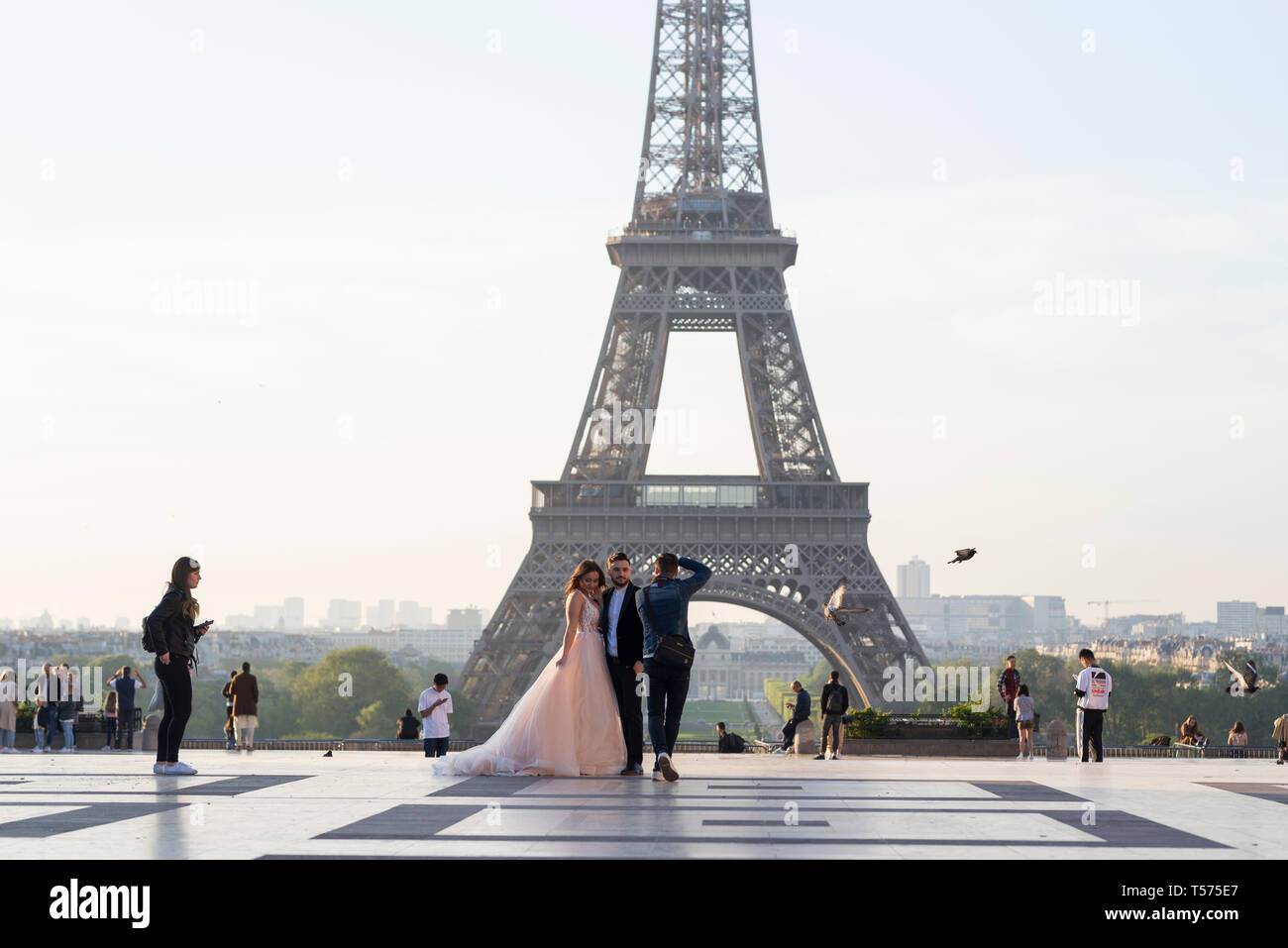 Paris France 21st April 2019 Sunrise At The Eiffel Tower And