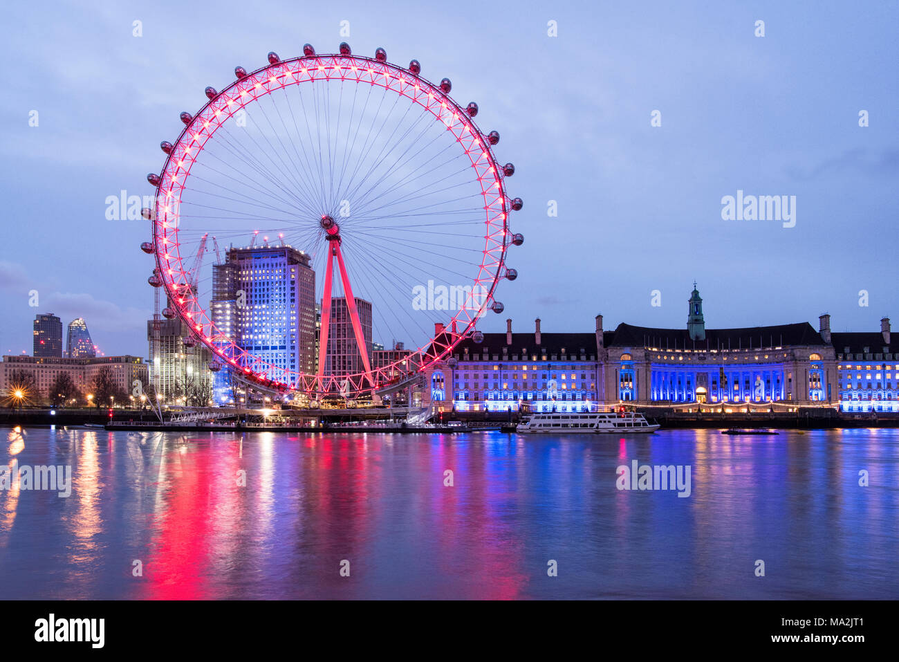 Sunrise At River Thames Looking Towards London Eye And County Hall
