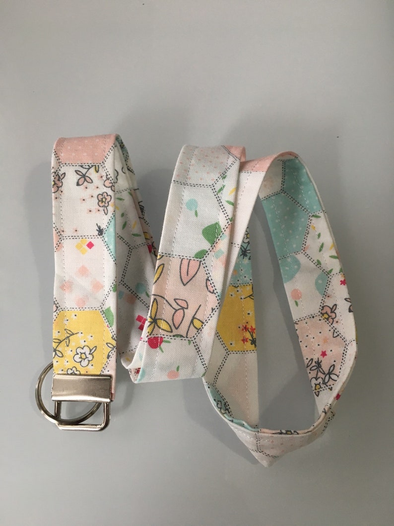 Pink Floral And Hexagon Quilt Lanyard Etsy