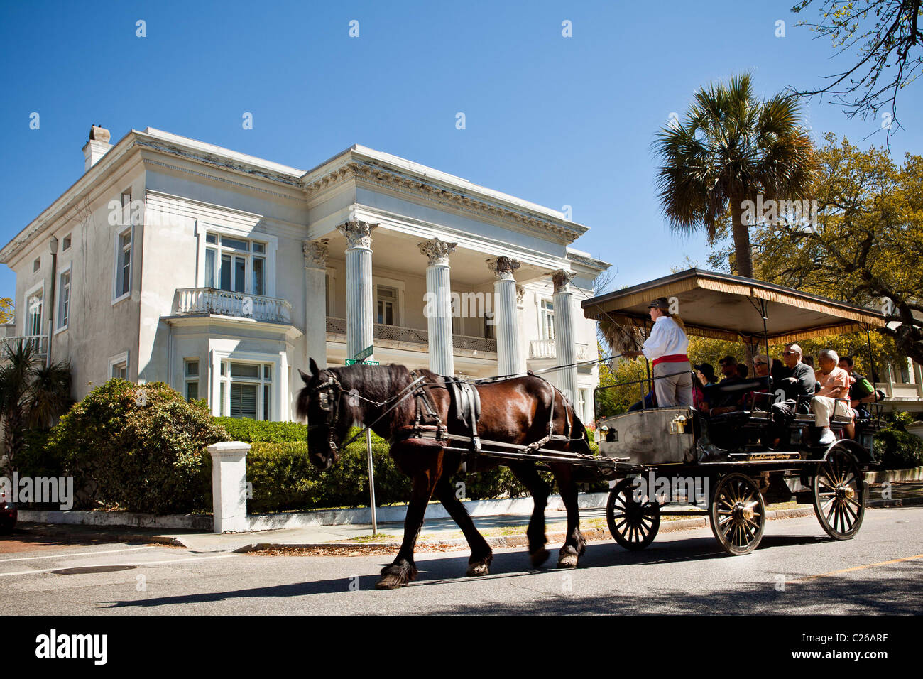Historic Homes Along The Battery With Horse Carriage Tour In Stock