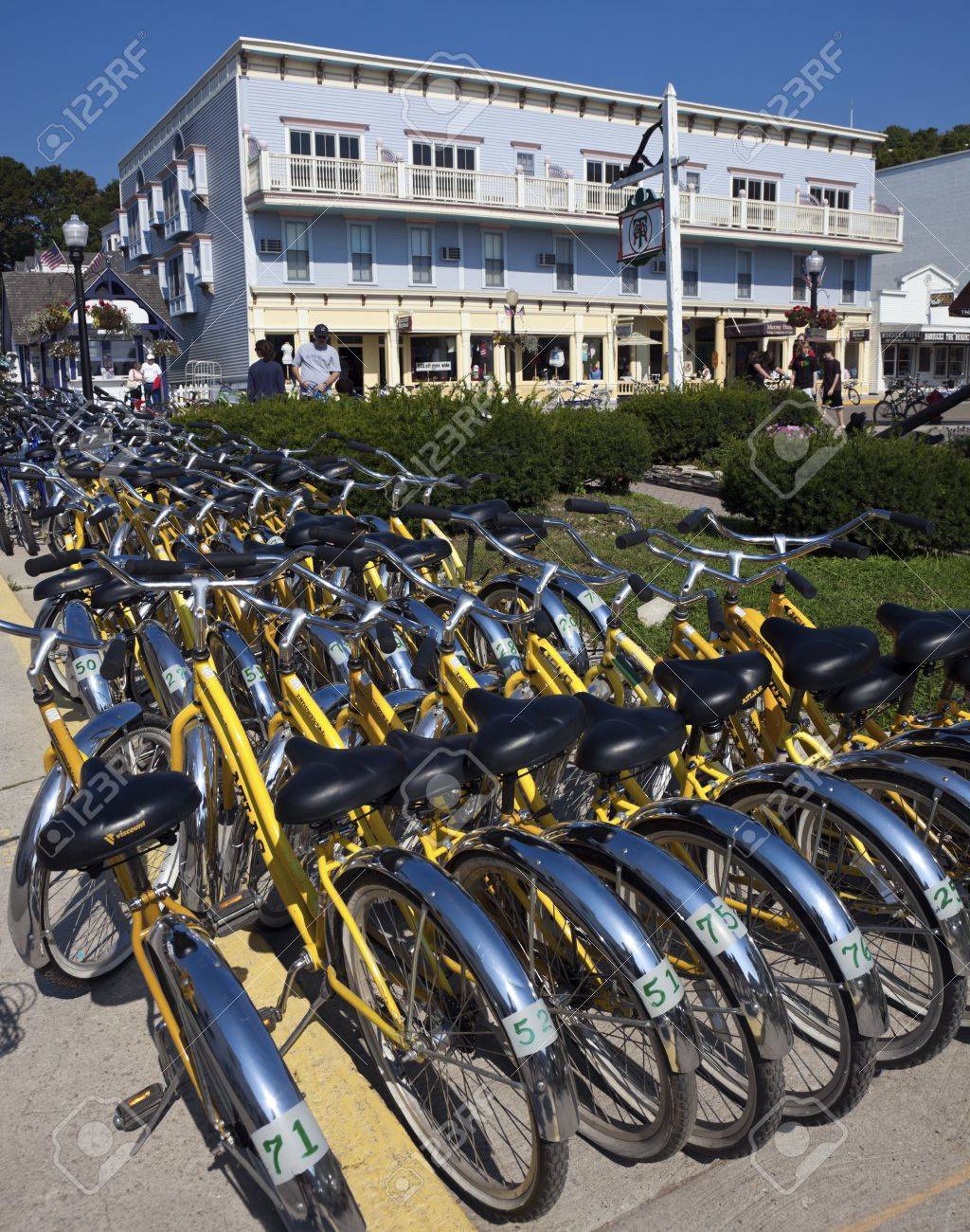 Mackinac Island Michigan Usa Row Of The Bikes For Rent Seen