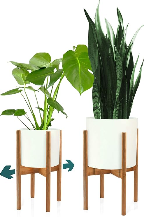 Mid century wood plant stand indoor adjustable for pots from 8 to 10 inches pedestal century modern plant stool wooden flower planter holder corner floor living room bedroom pot not included.