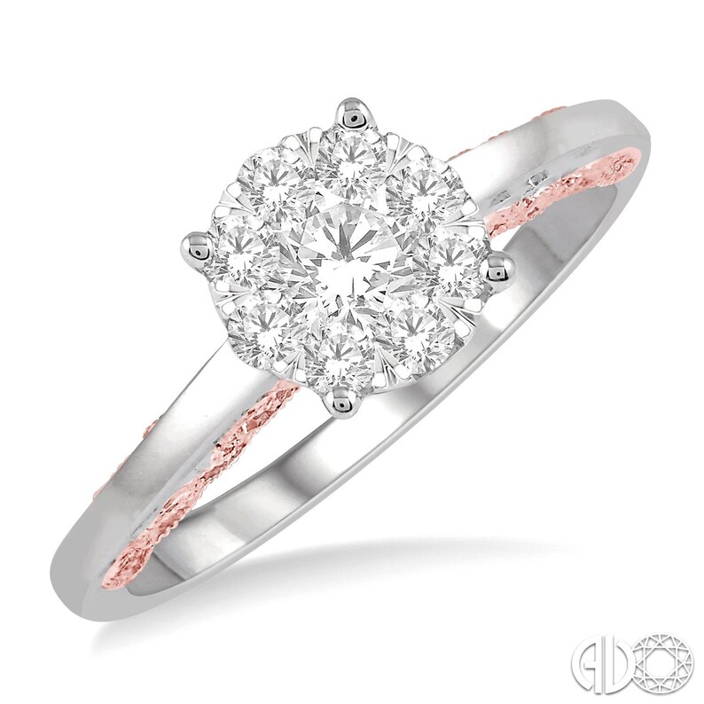 1 Carat Halo Diamond Two Toned Engagement Ring In 14k White Rose