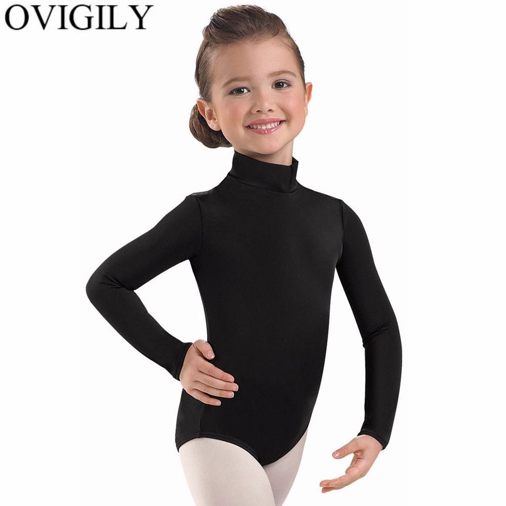 2019 Ovigily Kids Black Long Sleeve Ballet Leotards For Girls