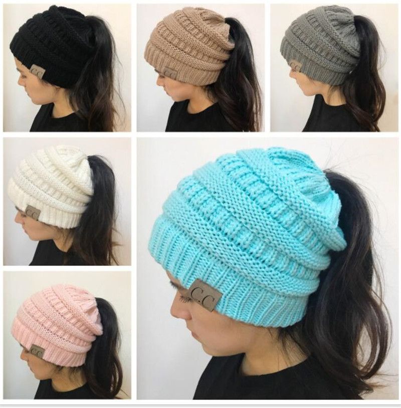 Trendy Women Cc Ponytail Caps Knitted Beanie Fashion Girls Winter
