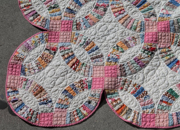 Double Wedding Ring Quilt With Scalloped Border For Sale At 1stdibs