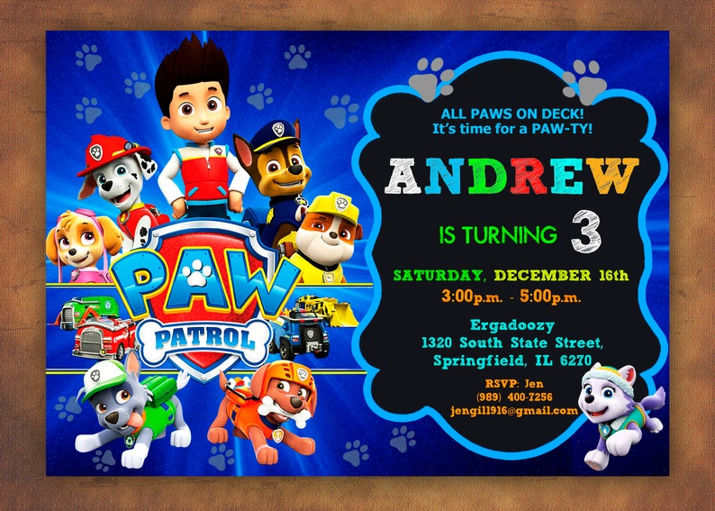 Paw Patrol Invitation Paw Patrol Birthday Party Paw Patrol Etsy